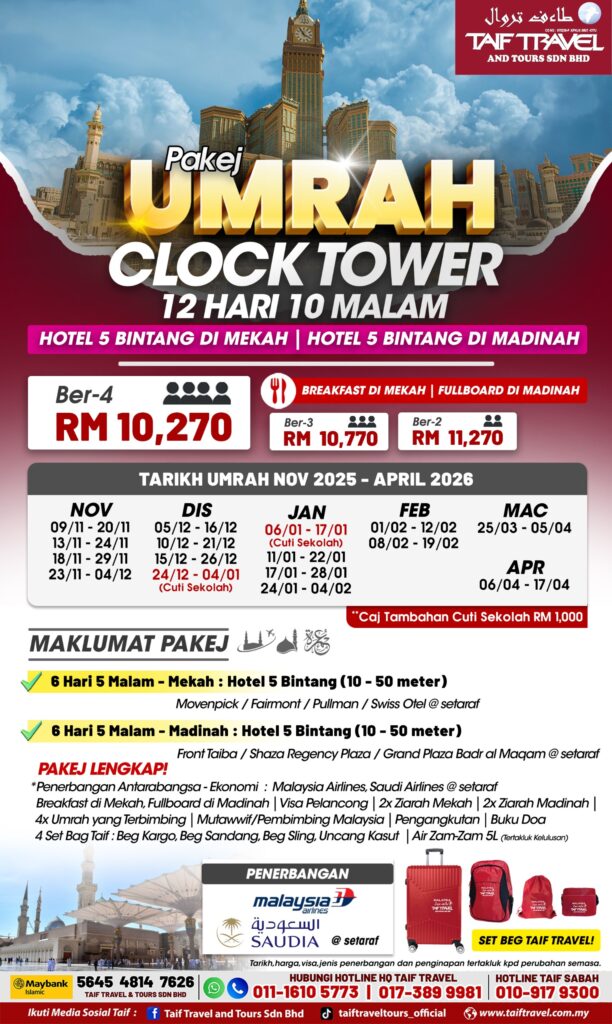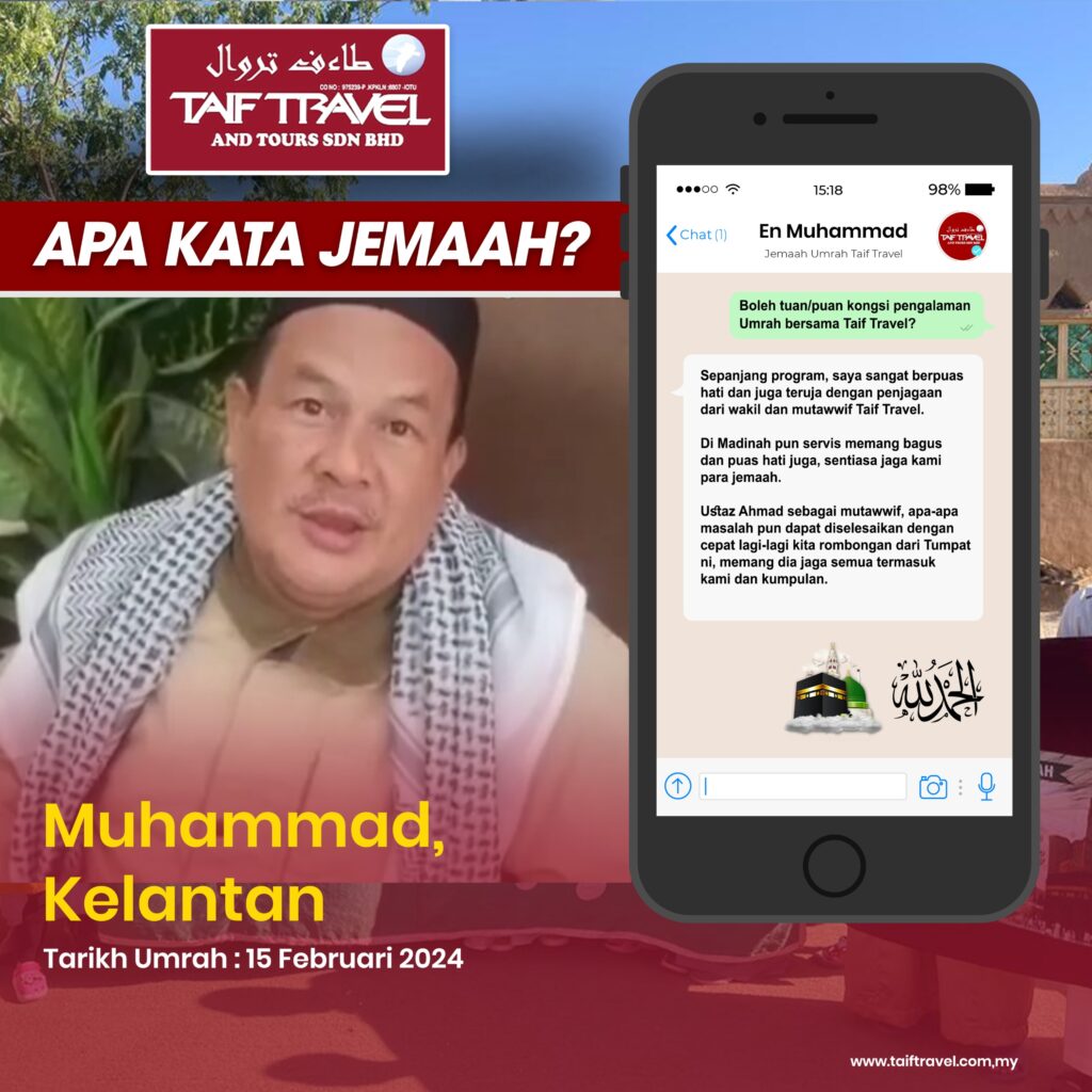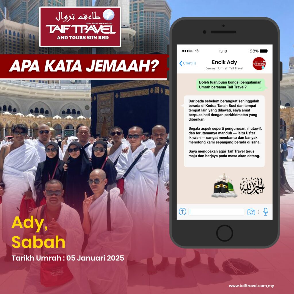 Di bawah kepimpinan Tuan Haji Kudhri, seorang usahawan berpengalaman dan komited dalam industri pelancongan ibadah, Taif Travel berdedikasi menyediakan pengalaman Umrah bertaraf gred A bukan sekadar perjalanan ibadah, tetapi satu pengembaraan rohani yang memperkukuh keimanan serta membimbing para jemaah secara menyeluruh dari seluruh Asia