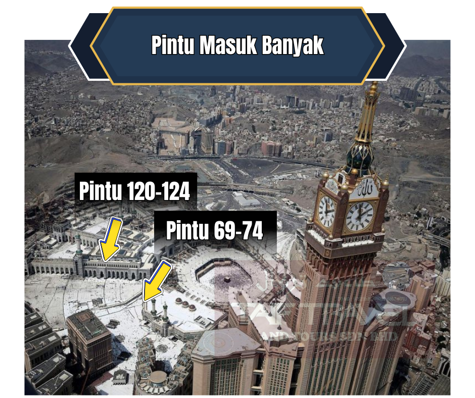 Boleh masuk ke dalam masjid ikut pintu 120-124, 69-74. Pintu 74 ni boleh terus ke kawasan solat berhampiran Kaabah.