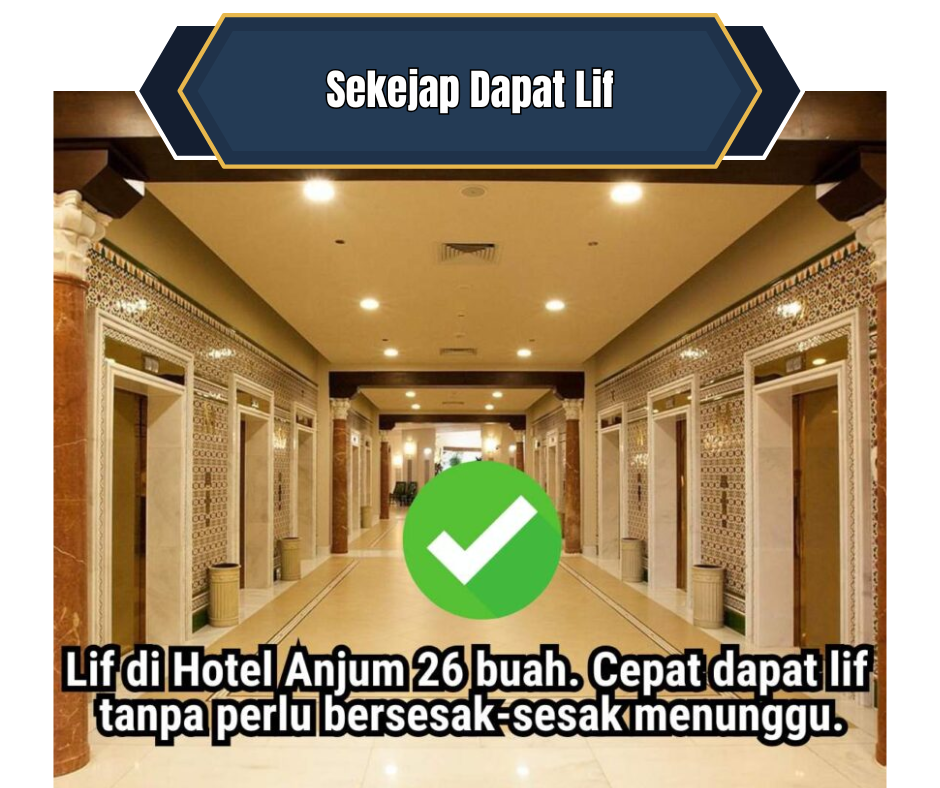 Di Hotel Anjum ada 26 buah lif. Balik dari masjid, jika nak terus naik ke bilik, sekejap sahaja dah dapat lif.